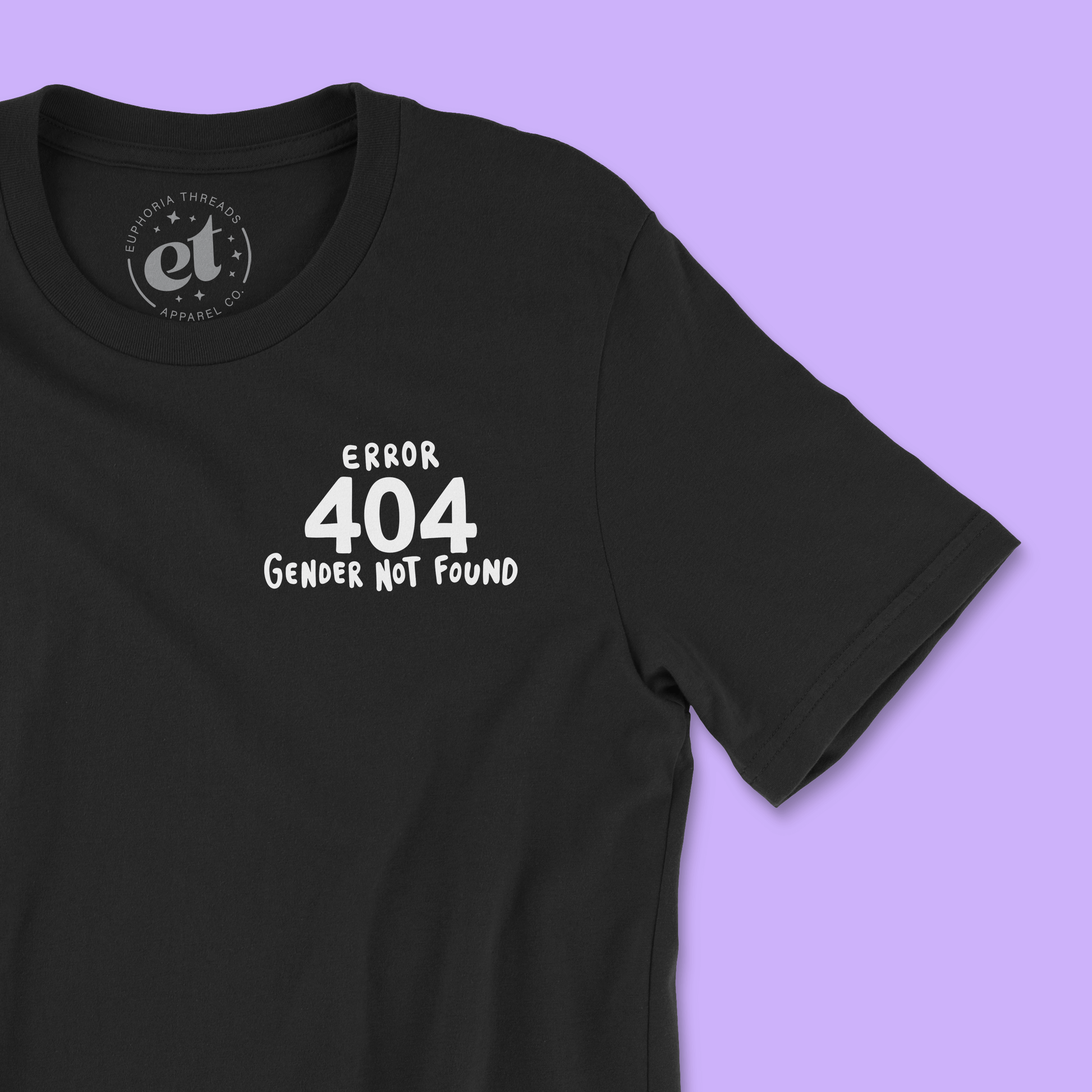 The Euphoria Threads Error 404 Gender Not Found tee is a fun, bold way to celebrate the beautiful complexity of your gender—and challenge the binary systems that try to tell us we are not valid.