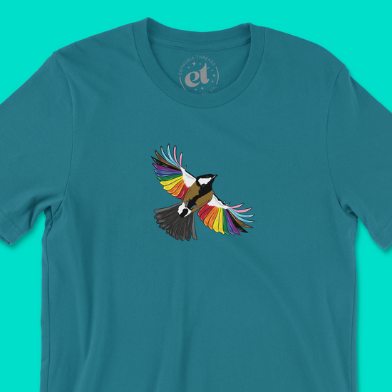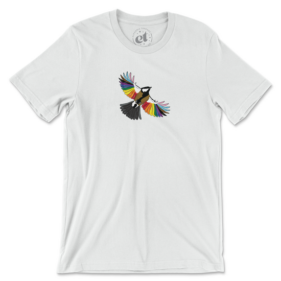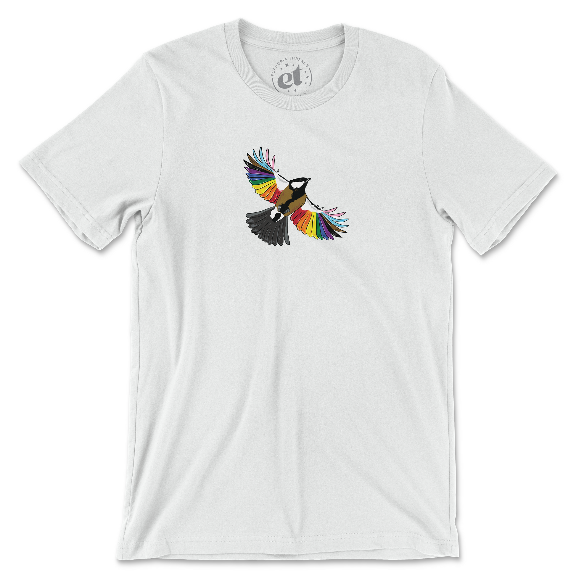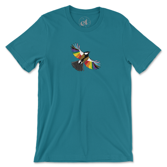 Representing the feeling of flying high that experiencing trans and queer joy brings, let this colorful bird remind you to spread your wings wide and let yourself soar. Whether worn to show your own queer pride or as a gesture of solidarity, this tee serves as a powerful reminder to the queer community that they are valued and supported.