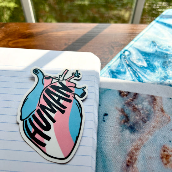 Celebrate the trans community with the Euphoria Threads 'Human at Heart' sticker. This thoughtfully designed sticker encapsulates the essence of equality and understanding and sends the message that we all deserve to be treated with humanity.