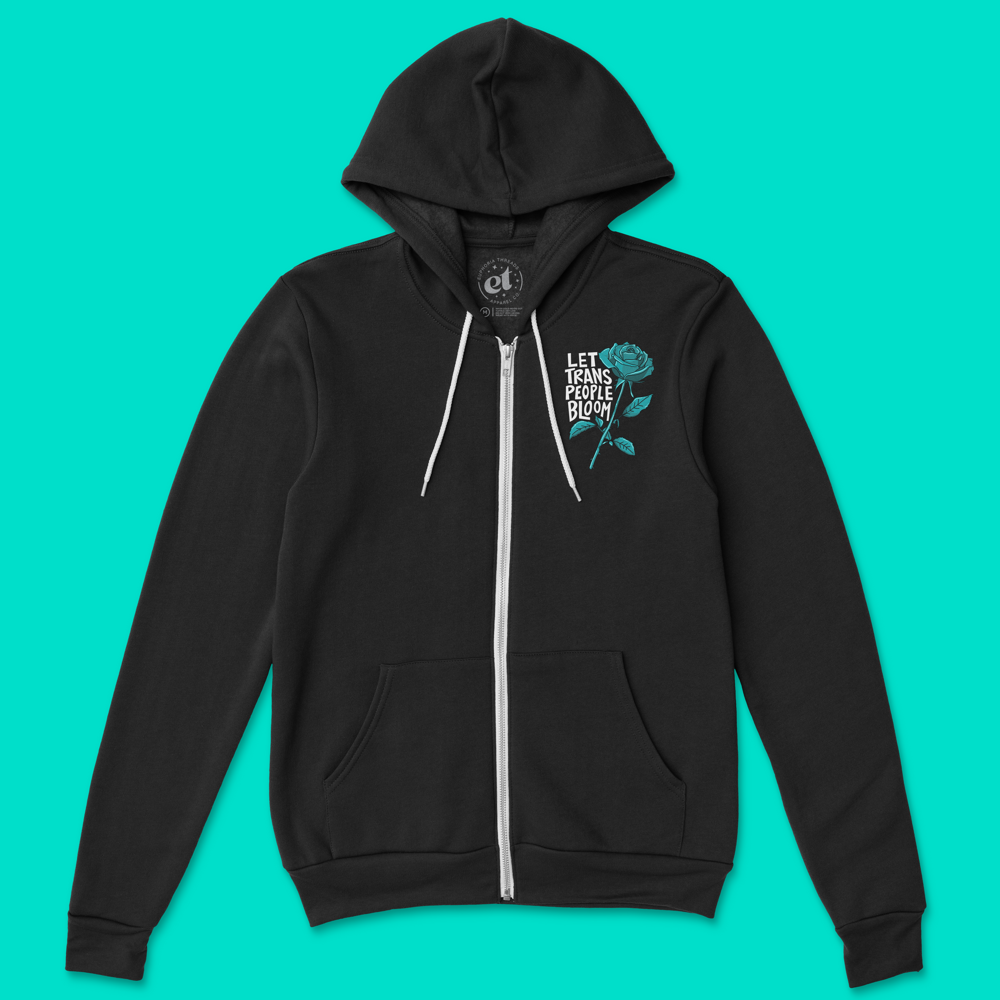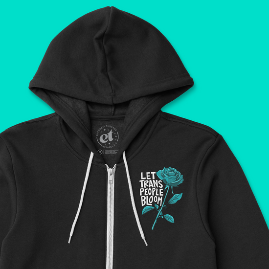 Make a statement with the Euphoria Threads "Let Trans People Bloom" unisex zip hoodie, designed to uplift, empower, and celebrate the transgender community. This soft hoodie serves as a reminder that trans people deserve to flourish in a world that recognizes their beauty, resilience, and strength. By wearing this hoodie, you’re advocating for a future where everyone is embraced for who they are and feels safe to laugh, love, dream, and live fully as their authentic self. Join us in fighting for a world where trans people can truly bloom!