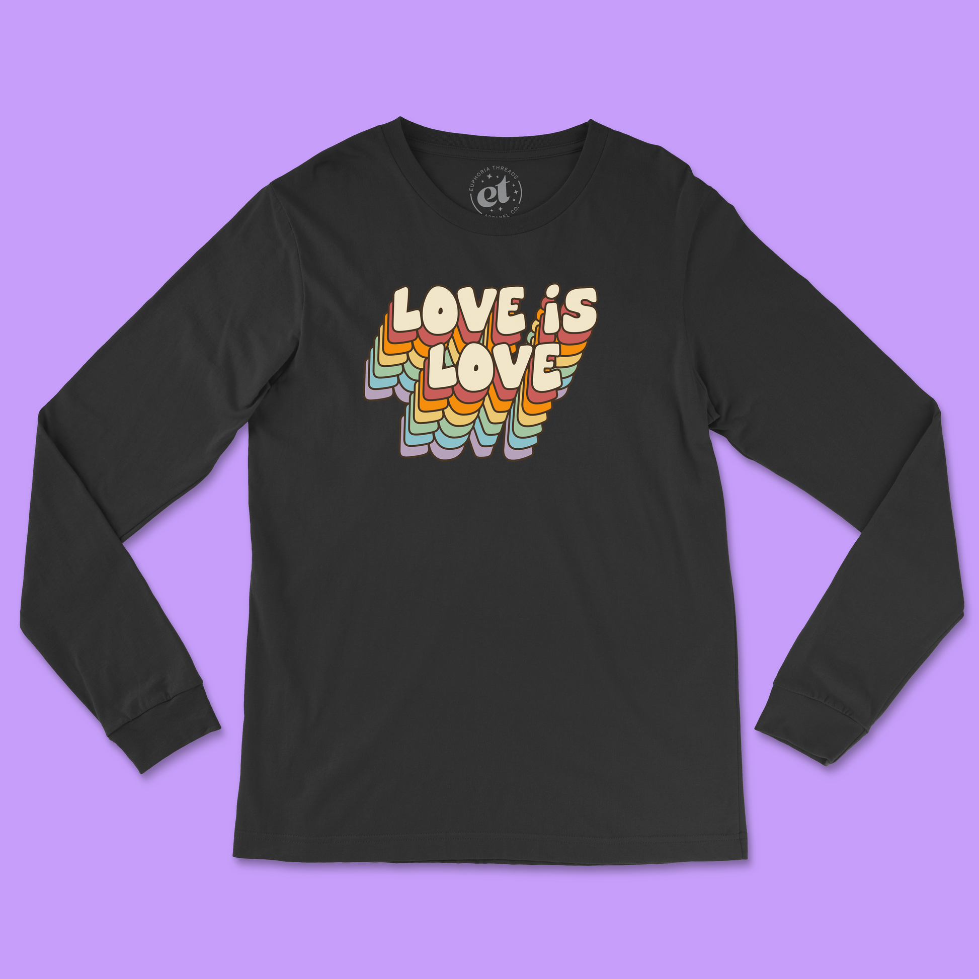 This Love is Love retro long sleeve tee is a powerful way to show the world that all love is beautiful and valid! Made from soft, premium ring-spun 100% cotton, it guarantees comfort while making a bold statement. The classic crew neckline and long sleeves provide a timeless fit that works for any occasion, making it a versatile addition to your comfy, cool weather wardrobe. Wear it with pride and show your commitment to acceptance and equality!