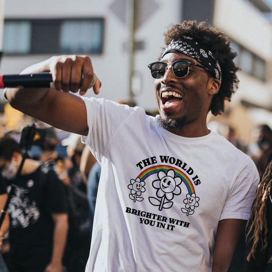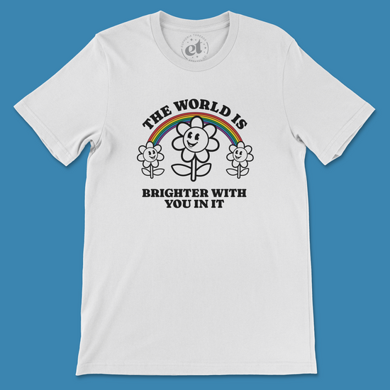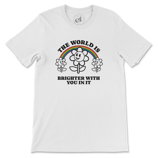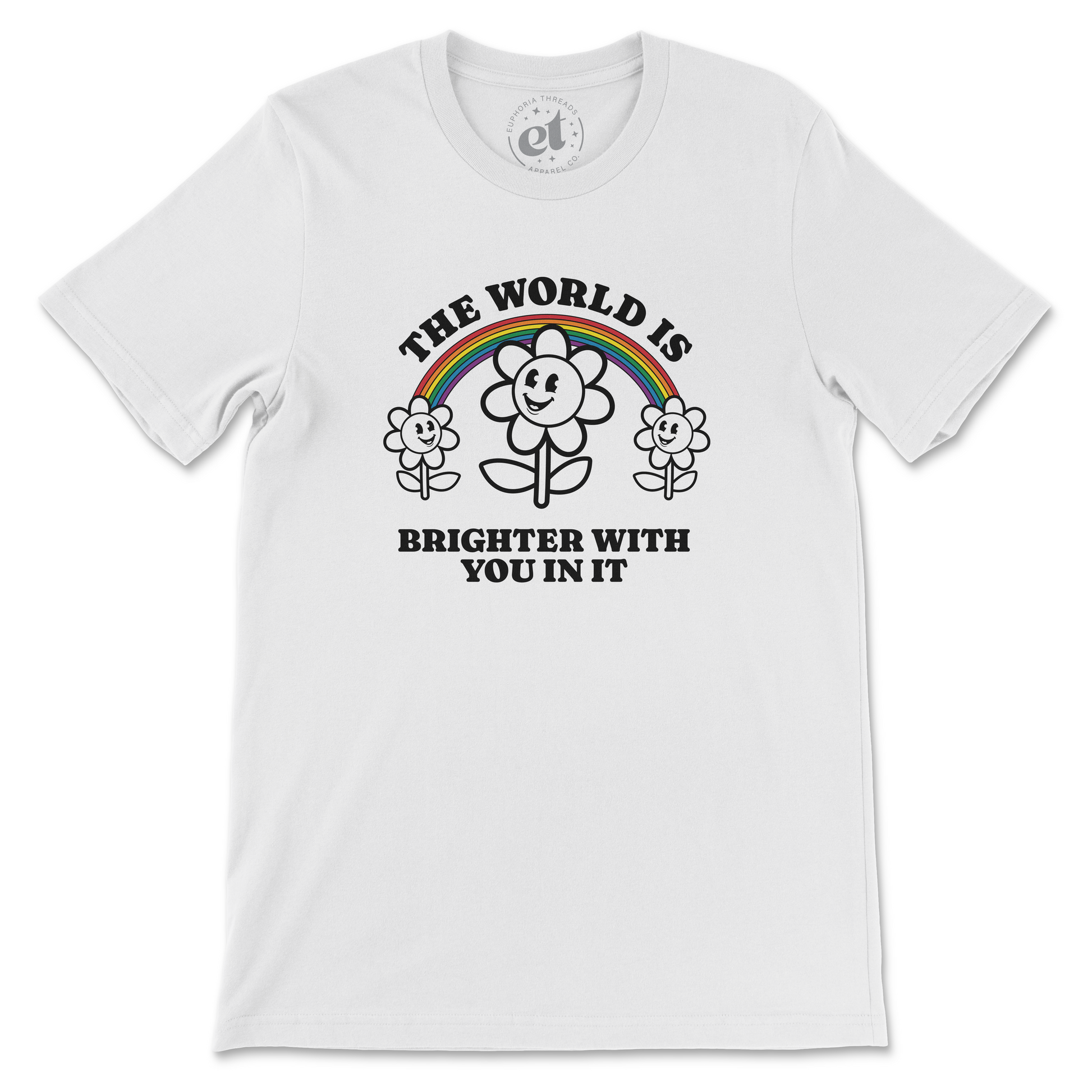 The Euphoria Threads The World is Brighter With You In It tee's bold and retro-inspired design embodies the spirit of inclusivity, inviting all to embrace their true selves and stand in solidarity with the LGBTQIA+ community. Whether worn as a personal affirmation or a visible symbol of support, this is more than just a shirt-it's a beacon of unity, acceptance, and pride.
