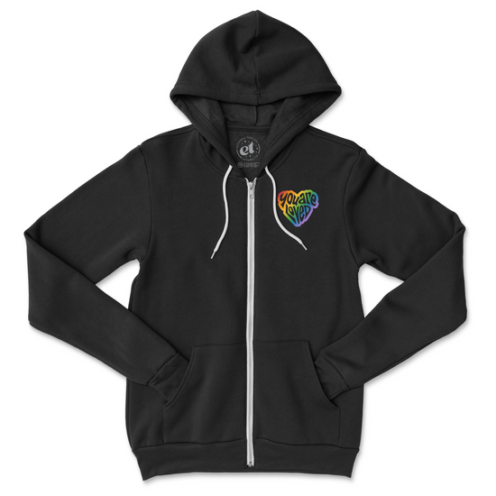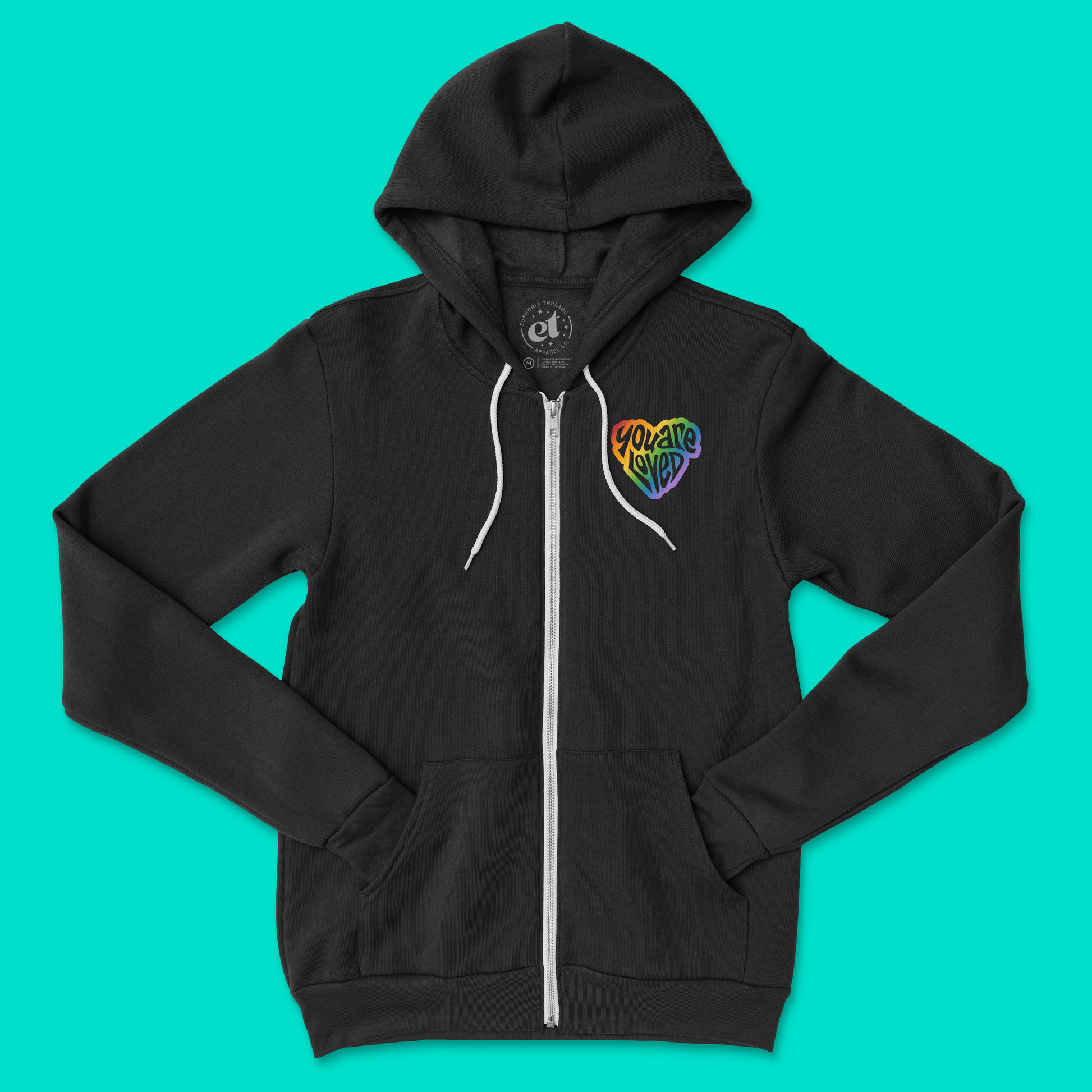 The Euphoria Threads 'You Are Loved Rainbow Heart' unisex zip hoodie serves as a reminder to the LGBTQIA2S+ community that they are not alone and are deserving of love and acceptance. With love as the stronger force, together, we can combat hate and create a more inclusive world.